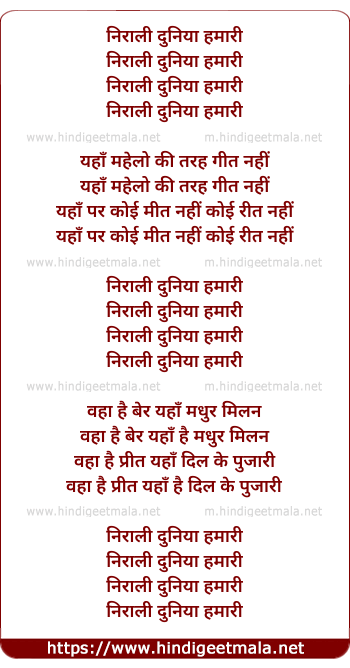 Poetic Translation - Lyrics of Nirali Duniya Hamari