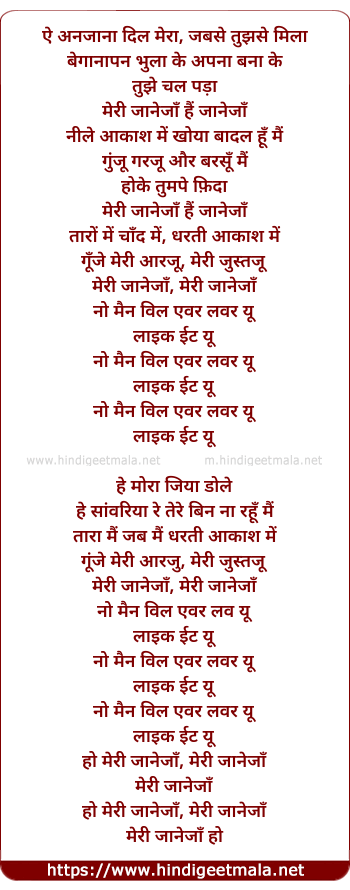 Poetic Translation - Lyrics of No Man Will Ever Love You - ऐ अनजाना दिल मेरा, जबसे तुझसे मिला