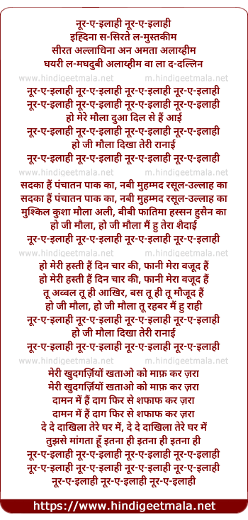 Lyrics of Noor-E-Ilahi - नूर-ए-इलाही नूर-ए-इलाही