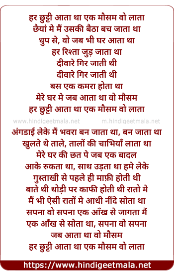 Lyrics of Har Chutti Aata Tha - हर छुट्टी आता था