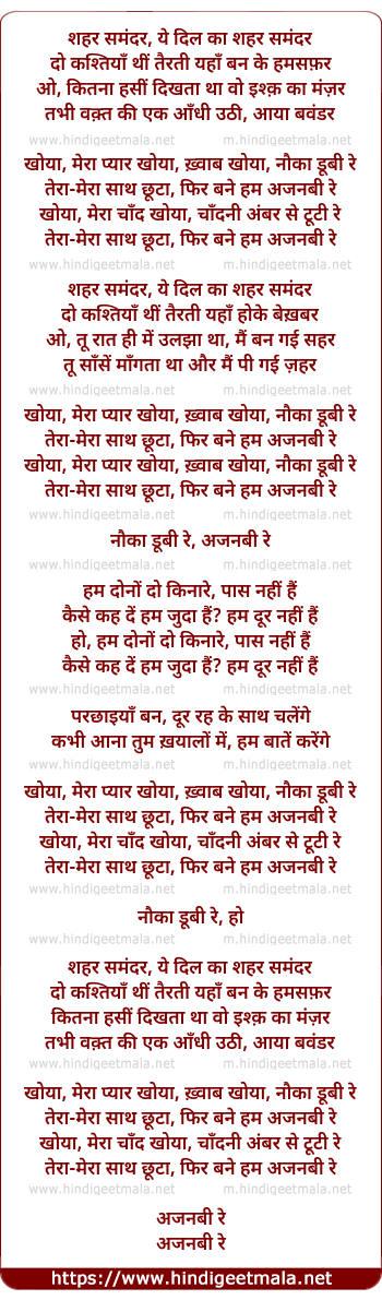 tera-mera saath chhoota, phir bane hum ajnabi re