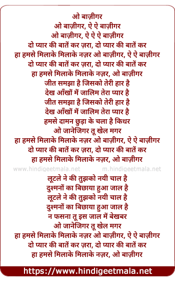 Lyrics of O Baazigar - ओ बाज़ीगर