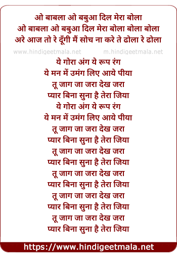 Lyrics of O Babla O Babua Dil Mera - ओ बाबला ओ बबुआ दिल मेरा