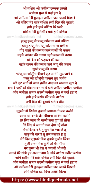 Lyrics of O Bashira, O Jameela Chammak Challo - ओ बशिरा ओ जमीला छम्मक छल्लो