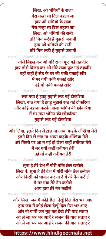 likh ve, sunaa hai tere desh me gori baanke chhail chhabile