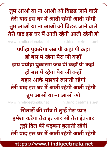teri yaad is ghar mein aati rahegi aati rahegi ho