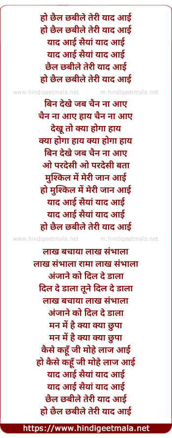 ho chhail chhabile teri yaad aayi