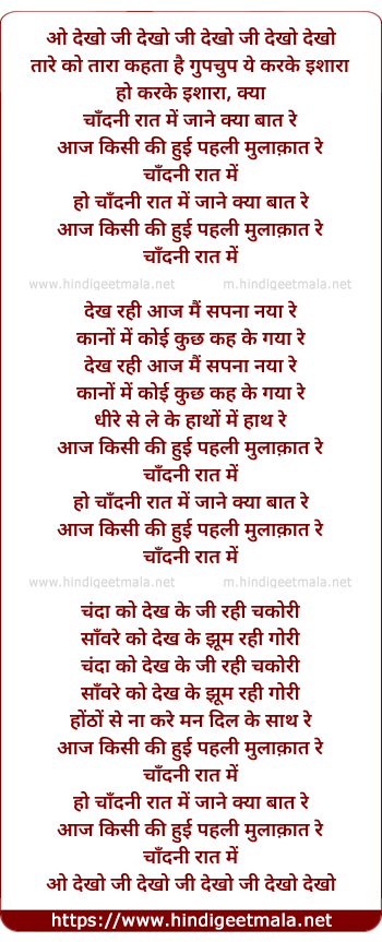 Lyrics of O Dekho Ji, Taare Ko Taaraa, Chaandani Raat Mein - ओ देखो जी, तारे को तारा, चांदनी रात में