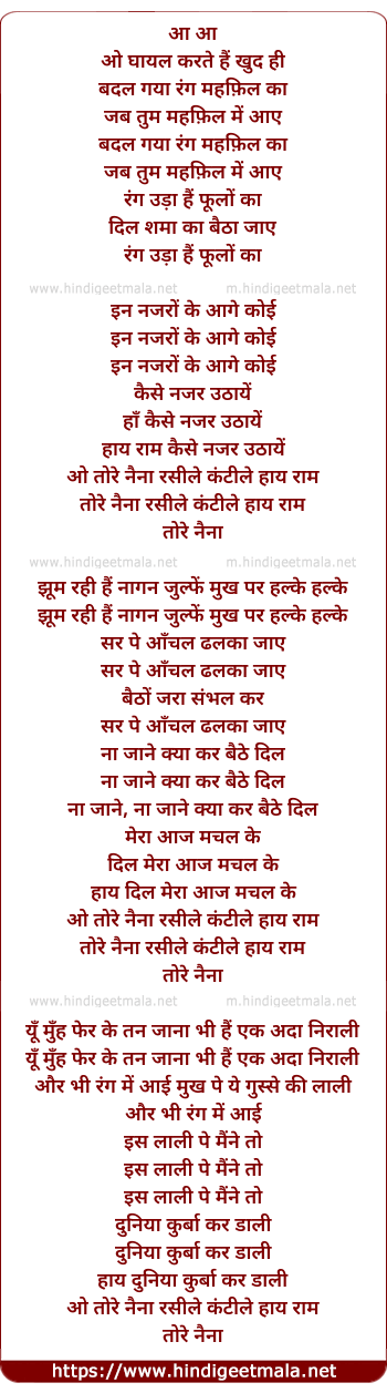 Lyrics of O Ghayal Karte Hai Khud Hi - ओ घायल करते है खुद ही
