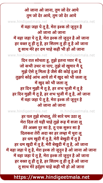 o jana o jana, tum jo der aaye