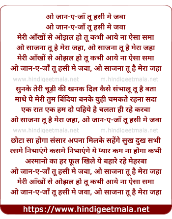 Lyrics of O Jaane Jaan Tu Haseen Main Jawan - ओ जान-ए-जाँ तू हँसी मैं जवा