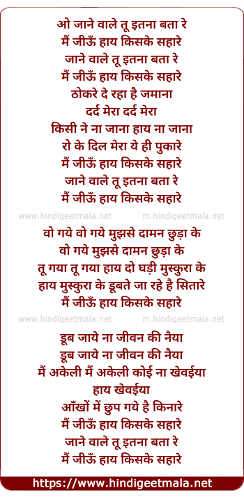 Lyrics of O Jaane Wale Tu Itna Bata De - ओ जाने वाले तू इतना बता रे