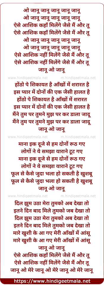 Lyrics of O Jaanu O Mere Jaanu - ओ जानू ओ मेरी जानू