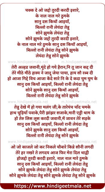 saanu das kithon aaiyan, billo raani! leyandu tennu sone jhumke