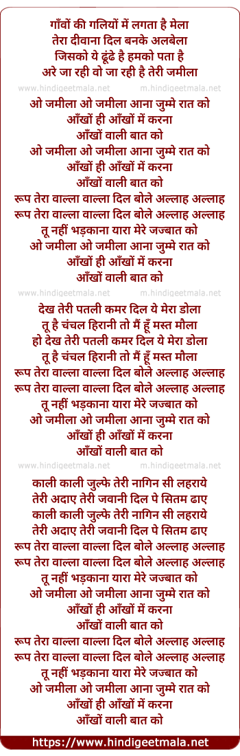 Poetic Translation - Lyrics of O Jameela - ओ जमीला