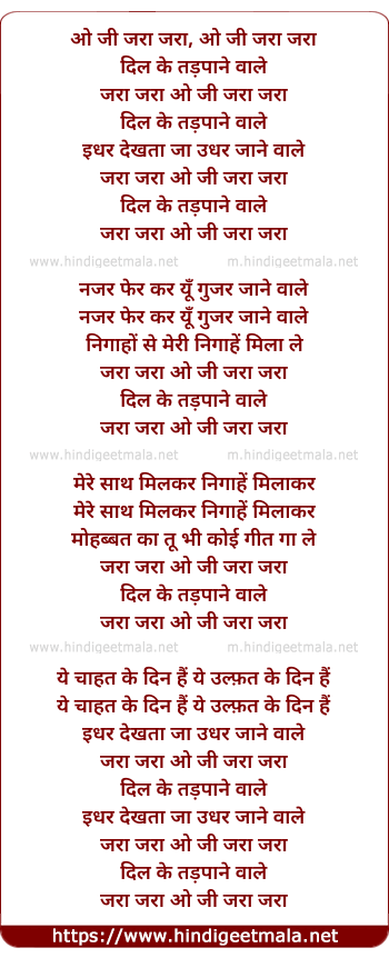 Lyrics of O Ji Zaraa Zara, Dil Ke Tadpane Wale - ओ जी जरा जरा, दिल के तड़पने वाले