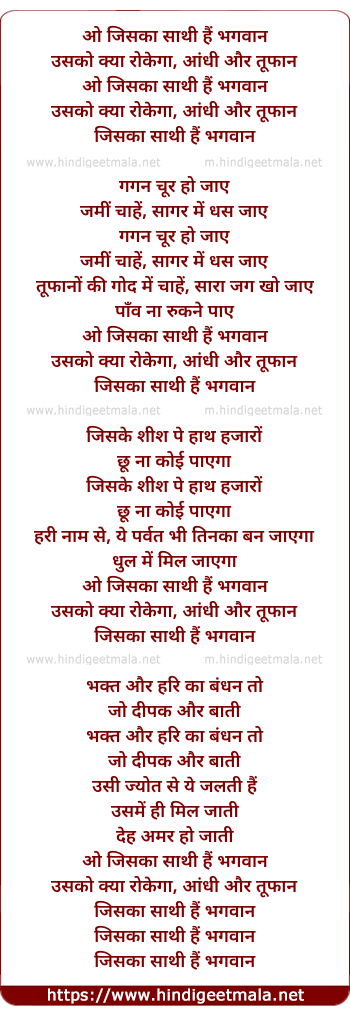 Lyrics of O Jiska Sathi Hai Bhagwan - ओ जिसका साथी हैं भगवान