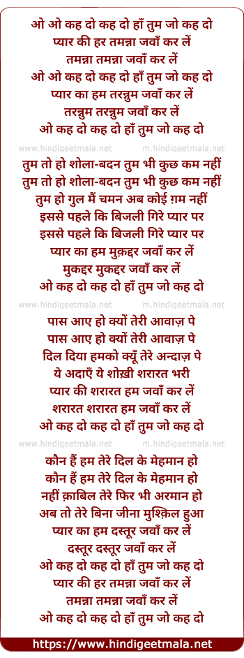 Lyrics of O O Kah Do Kah Do Ha Tum Jo Kah Do - ओ ओ कह दो कह दो हाँ तुम जो कह दो