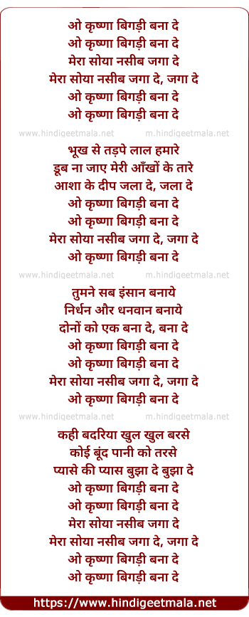 Lyrics of O Krishnaa Bigdi Bana De - ओ कृष्णा बिगड़ी बना दे