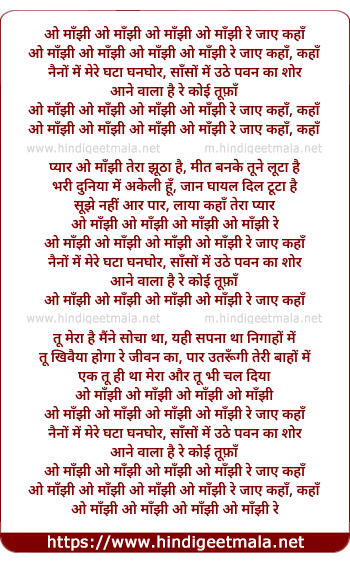 Lyrics of O Manjhi Re Jaye Kaha - ओ माँझी रे जाए कहाँ