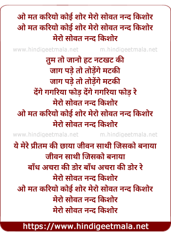 Lyrics of O Mat Kariyo Koi Shor - ओ मत करियो कोई शोर
