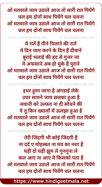 Lyrics of O Matwaale Jaam Utha Le - ओ मतवाले जाम उठा ले
