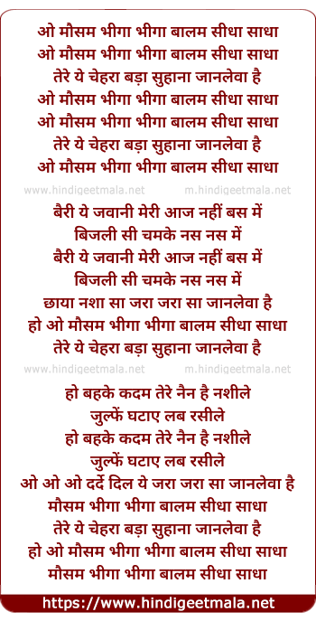 Lyrics of O Mausam Bhiga Bhiga - ओ मौसम भीगा भीगा