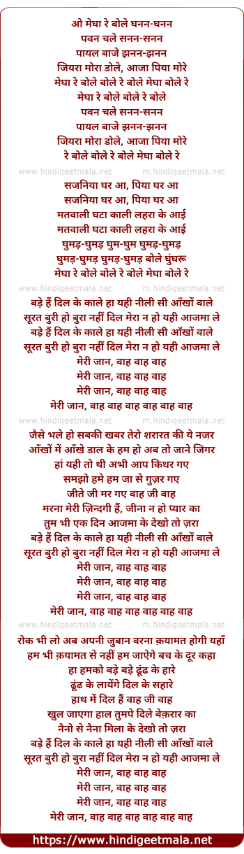 Lyrics of O Meghaa Re Bole Ghanan Ghanan - ओ मेघा रे बोले घनन-घनन