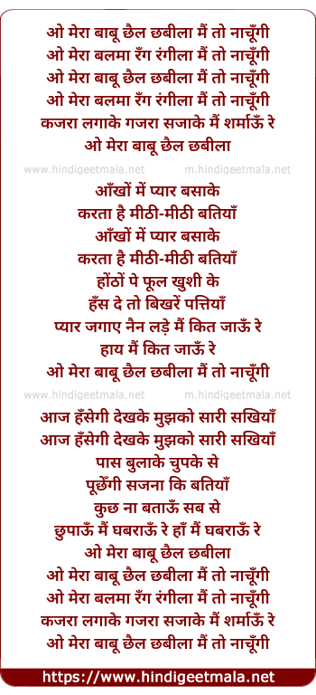 Lyrics of O Meraa Baabu Chhail Chhabilaa Main To Naachungi - ओ मेरा बाबू छैल छबीला मैं तो नाचूँगी