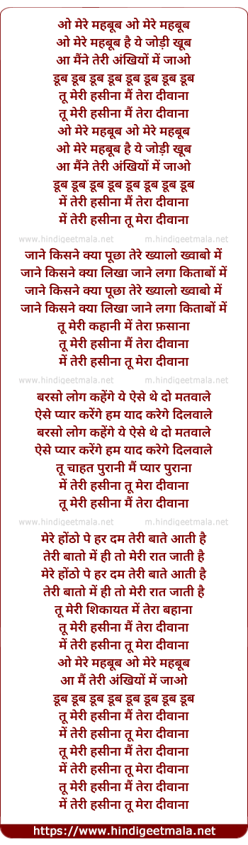Lyrics of O Mere Mehboob - ओ मेरे महबूब