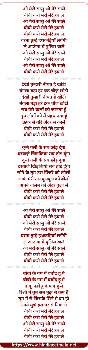 biwi karo meree mere hawale