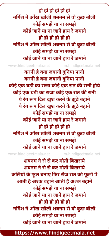 Lyrics of O Nargis Ne Aankh Kholi - ओ नर्गिश ने आँख खोली
