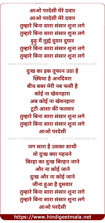 Lyrics of O Pardesi O Pardesi Aao Pardesi - ओ परदेसी ओ परदेसी आओ परदेसी