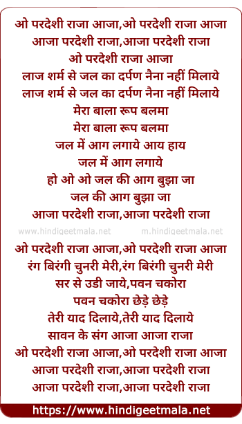 Lyrics of O Pardesi Raja Aaja - ओ आजा परदेशी राजा