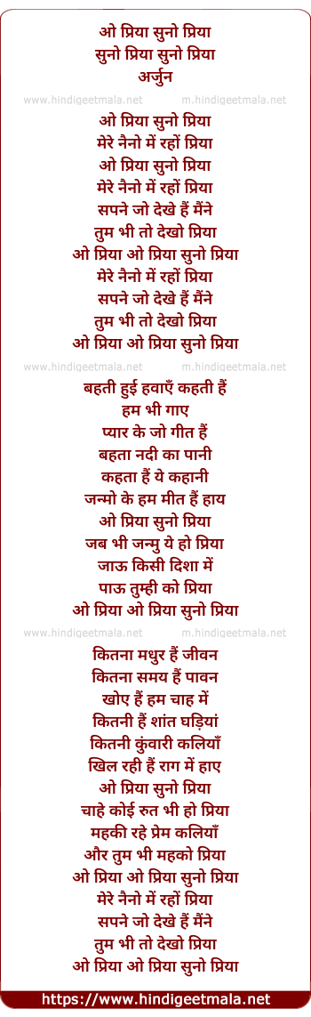 Lyrics of O Priya Suno Suno - ओ प्रिया सुनो सुनो