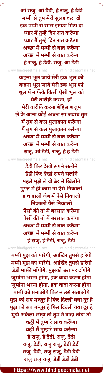 Lyrics of O Raaju O Daddy - ओ राजु ओ डैडी