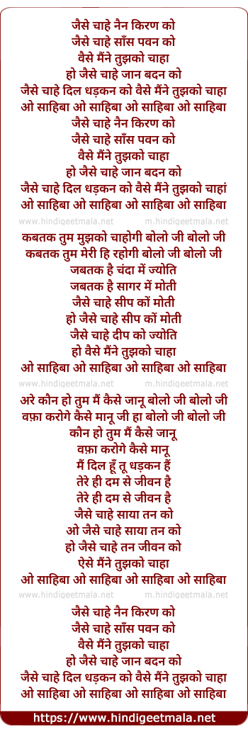 jaise chaahe dil dhadkan ko vaise maine tujhko chaaha