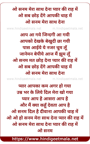 Lyrics of O Sanam Mera Saath Dena Pyaar Me - ओ सनम मेरा साथ देना प्यार में