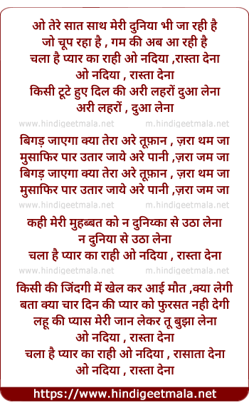 chalaa hai pyaar kaa raahi o nadiyaa, raasataa denaa