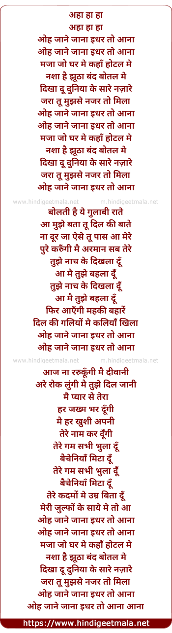 Lyrics of Oh Jane Jana Idhar Tu Aana - ओह जाने जाना इधर तो आना