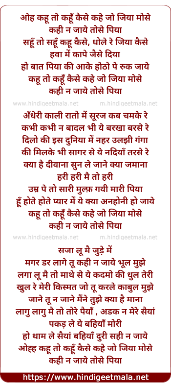 oh kaun to kahu kaise kahe jo jiya mose
