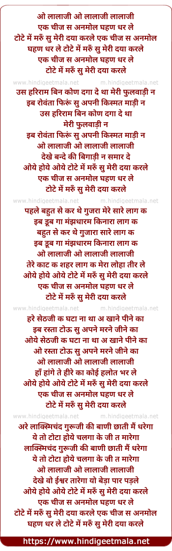 Poetic Translation - Lyrics of Oh Lalaji - ओ लालाजी