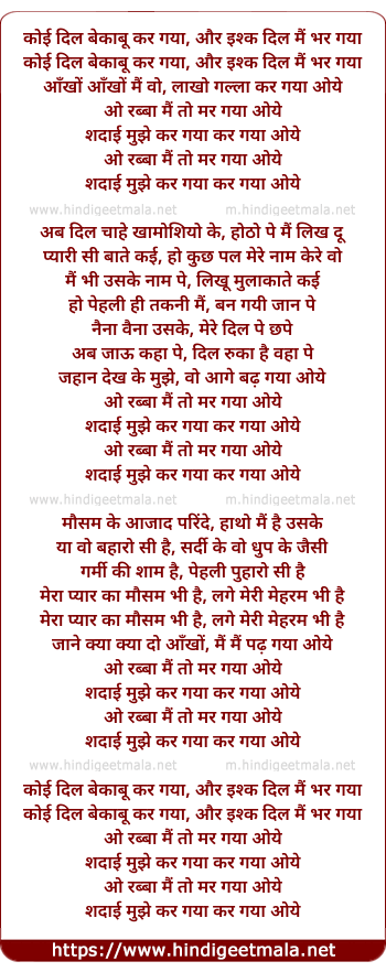 Lyrics of Oh Rabba Main Toh Mar Gaya Oye - ओ रब्बा मैं तो मर गया ओये