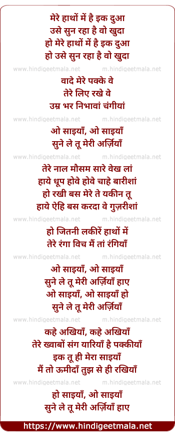 Lyrics of Oh Saaiyaan (Male) - ओह साइयां (मेल )