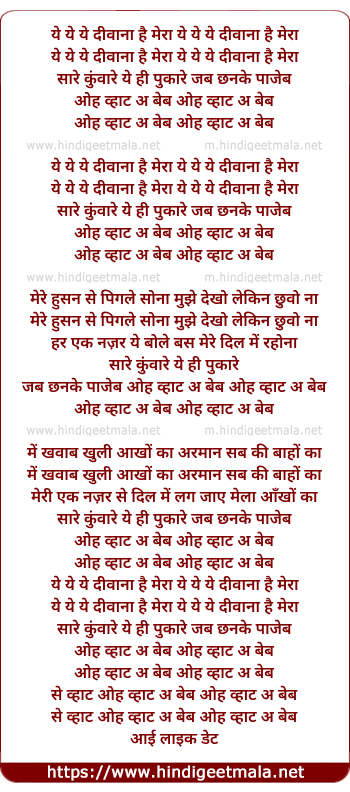 ye ye ye diwaana hai mera ye ye ye diwaana hai mera