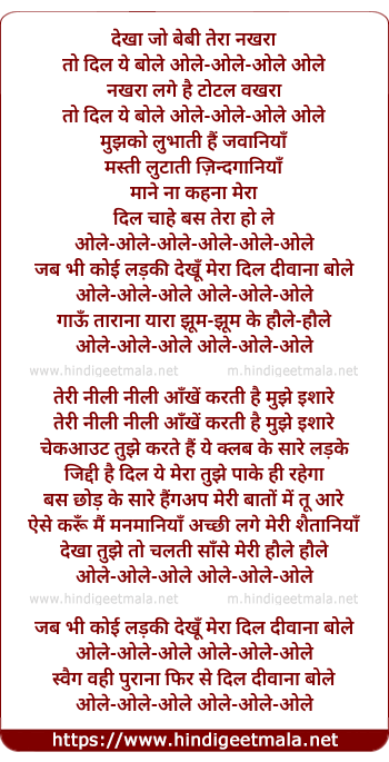 Lyrics of Ole Ole 2.0 - ओले ओले