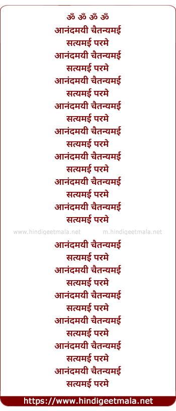 Lyrics of Om Anandmayi Chaitanyamayi - ॐ ॐ ॐ ॐ