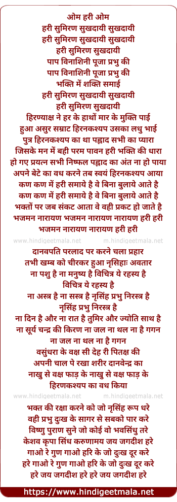 Lyrics of Om Hari Om (Vishnu Puran) - ओम हरी ओम