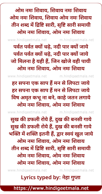 Lyrics of Om Namah Shivaya - ओम नमः शिवाय