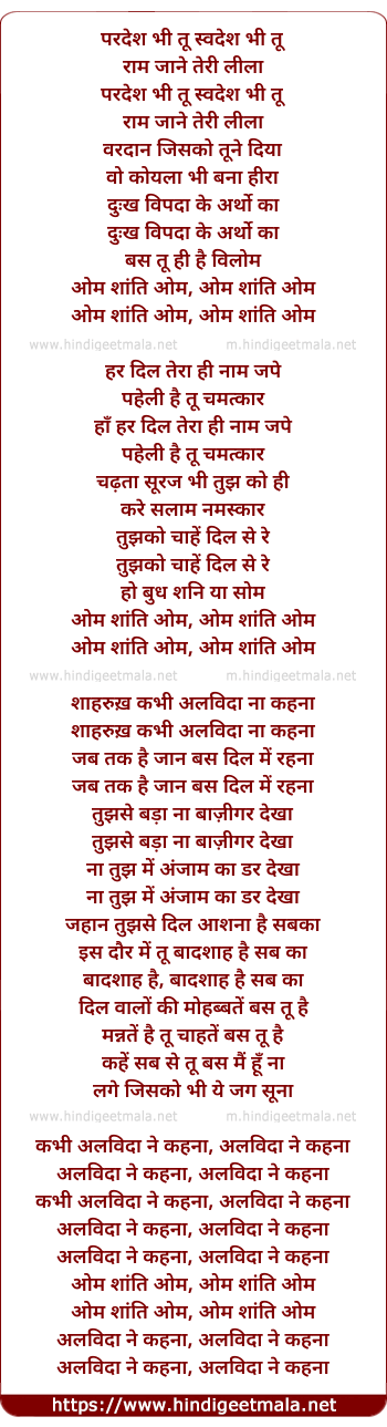 Lyrics of Om Shanti Om - ओम शांति ओम